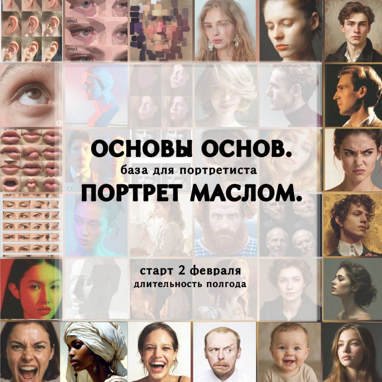 | На курсе вы научитесь и узнаете: ---как рисовать голову + разберем части лица как писать волосы разного типа, как передать их живость и объем рубленность, светотень, цвет, замесы — работа с палитрой и цветом в портрете ---повороты и ракурсы: фас, профиль, три четверти ---композиция в портрете (работа с эскизами) разные эмоции в портрете ---возраст (от младенца до старика) ---освещение в портрете ---итоговые работы — 3 Писать будем масляными красками. Старт курса: 2 февраля Длительность курса: полгода Количество уроков: 30-35 Уроки выходят один раз в неделю (пока курс записывается).